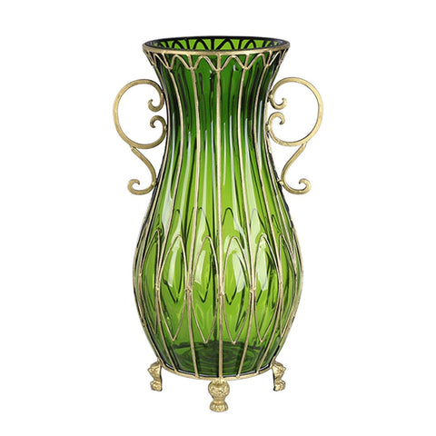 SOGA 51cm Green Glass Oval Floor Vase with Metal Flower Stand VASEYG4880GREEN