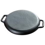 - Round cast-iron griddle provides exceptional heat retention and distribution