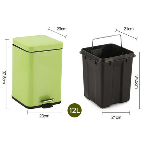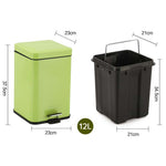 SOGA Foot Pedal Stainless Steel Rubbish Recycling Garbage Waste Trash Bin Square 12L Green RUBBISHBINSQUARE12LGREEN