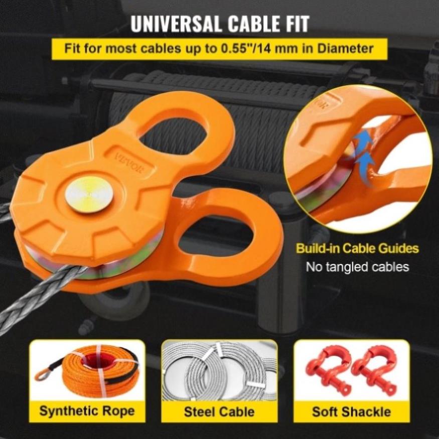 VEVOR Snatch Block, 11T/25,000 LBS Working Load Limit, Heavy Duty Winch Pulley for 0.55\"/14 mm V952-ZZDZJCH225000CSSEV0