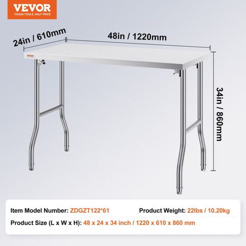 VEVOR Stainless Steel Kitchen Bench Folding Commercial Prep Table 1220x610 mm V952-CFGZT24X48YC00001V0