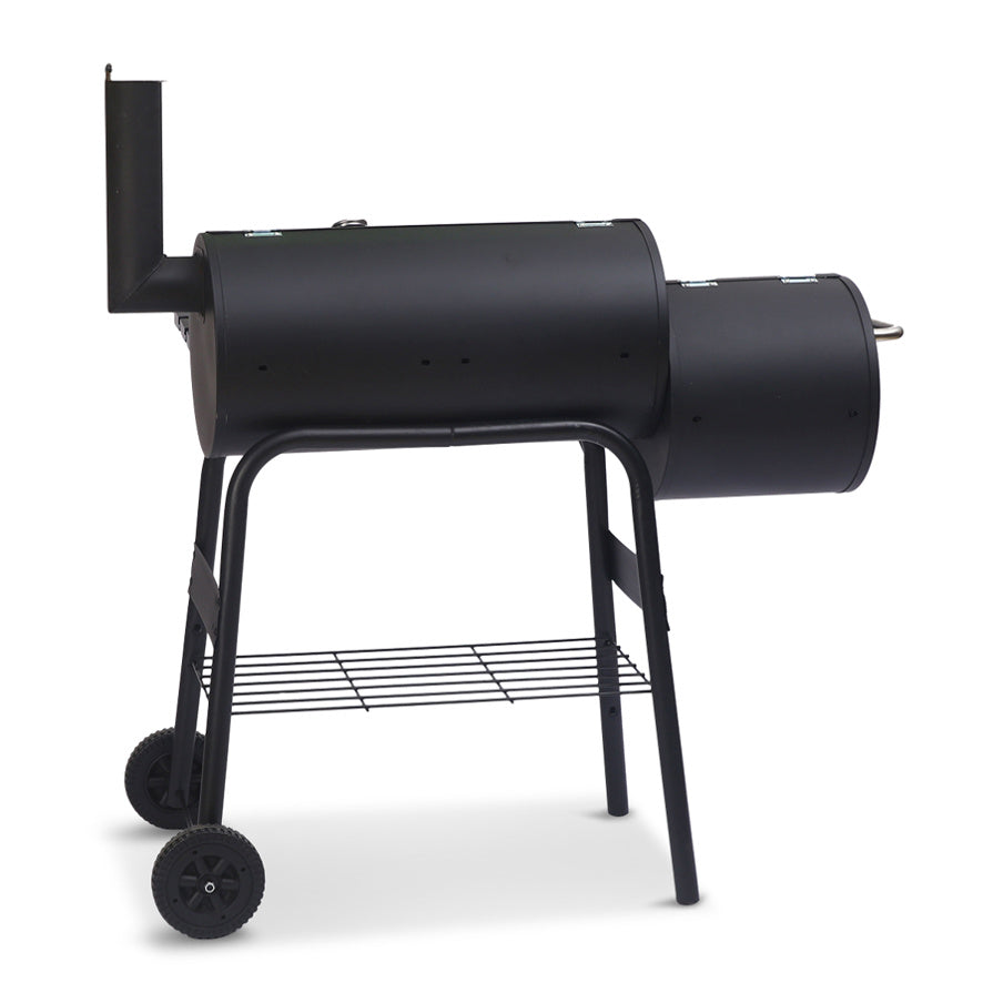 This offset smoker comprises a sturdy steel frame, side firebox and a spacious cooking chamber. It has a tight seal to ensure that the aroma and flavours are absorbed back into the food. The chimney and firebox damper provide good ventilation and make it easier to control the heat. There is also a lid thermometer to help you monitor the temperature.