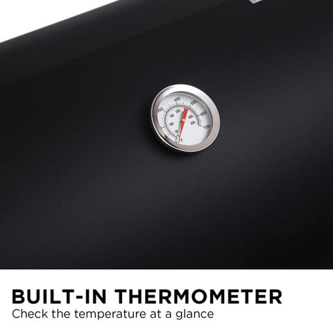 With a wide front shelf, this BBQ grill provides enough space for all your ingredients and utensils. You can also keep charcoal and hardwood in the storage rack. Plus, the rugged wheels allow for easy transportation so you can take this smoker with you to your next outdoor party!