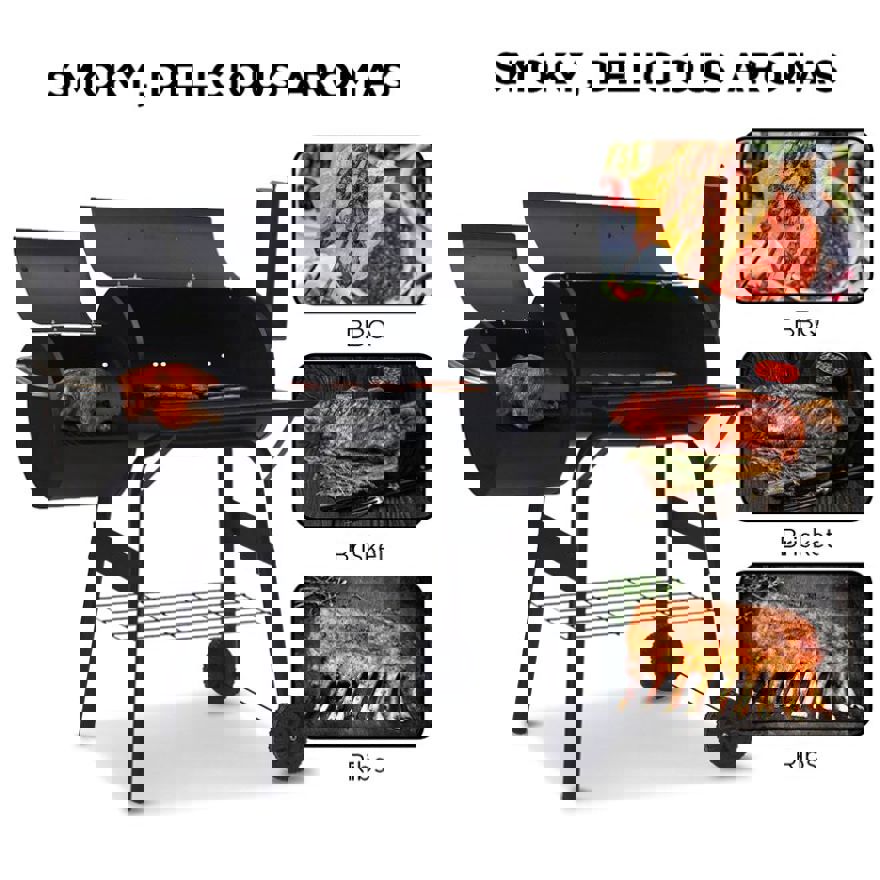 Master the art of grilling and smoking with this 2-in-1 outdoor barbecue grill. Made with heavy-gauge steel, it has everything you need for delicious outdoor cooking. Enjoy the smoky aromas of brisket and ribs or fire up some steaks for a weekend family gathering.